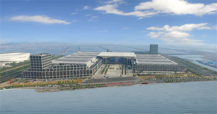 項目總建筑面積48.8萬㎡,其中地上建筑面積35.7萬㎡,地下建筑面積13.1萬㎡。由登錄大廳、單層A展廳、雙層B展廳、北塔酒店、南塔酒店兼辦公樓及地下能源中心組成。展館室內展覽面積15萬㎡,室外展覽面積20萬㎡,設有1個2萬㎡登錄大廳和14個室內展廳,是一座科技領先、質量上乘、國際一流的智慧展館。