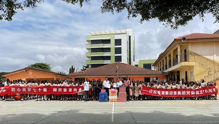 為慶祝集團(tuán)暨集團(tuán)黨委成立70周年,加納分公司組織了阿克拉地區(qū)項(xiàng)目管理人員對(duì)TAC教堂項(xiàng)目觀(guān)摩學(xué)習(xí),營(yíng)造爭(zhēng)先創(chuàng)優(yōu)和“比、學(xué)、趕、幫、超”的良好氛圍。加強(qiáng)項(xiàng)目建設(shè)的同時(shí),加納分公司還積極履行社會(huì)責(zé)任,向加納當(dāng)?shù)貙W(xué)校捐贈(zèng)學(xué)習(xí)和生活用品。