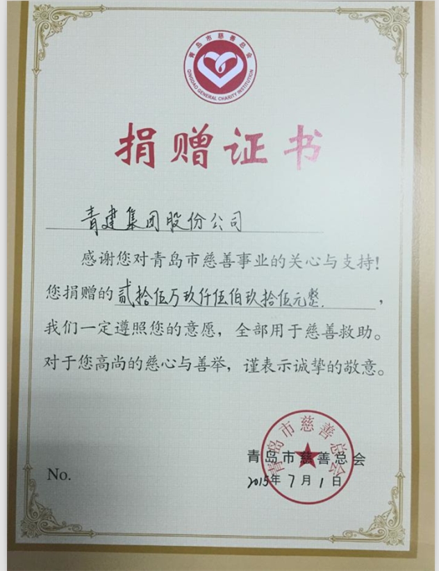在中國共產黨成立94周年來臨之際,集團工會發起組織了“慈善一日捐”活動,倡議大家拿出一天的工資,扶危濟困,實現企業和個人的社會價值。短短數日,就募集善款二十五萬余元。目前,捐款已通過市慈善總會注入設立的“青建慈善基金”,由專人負責資金的管理,使每一筆善款的使用都能做到公開、透明。
